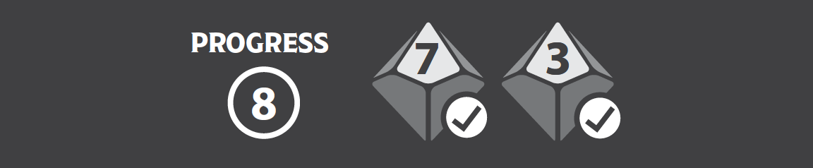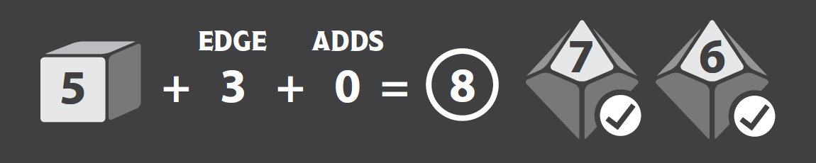 This feels like the proper resolution of this battle. Time to End the Fight (page 82). I tally my progress (8), roll the challenge dice, and compare.